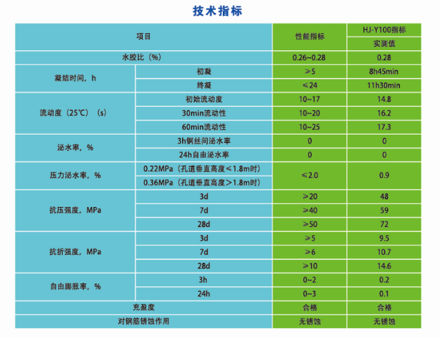 產(chǎn)品只有高充盈性,可一次性壓壓漿施工,管道內(nèi)漿體密實(shí)無(wú)空隙。無(wú)氯鹽、亞硝酸鹽、低堿、無(wú)銹蝕作用,無(wú)毒,對(duì)健康和環(huán)境均安全。